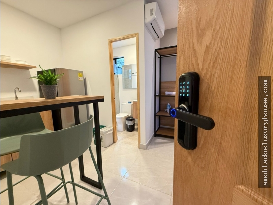 A dos cuadra del primer parque de laureles Un solo ambiente Aire acondicionado Cama doble Cocina dotada televisor Agua caliente Wifi